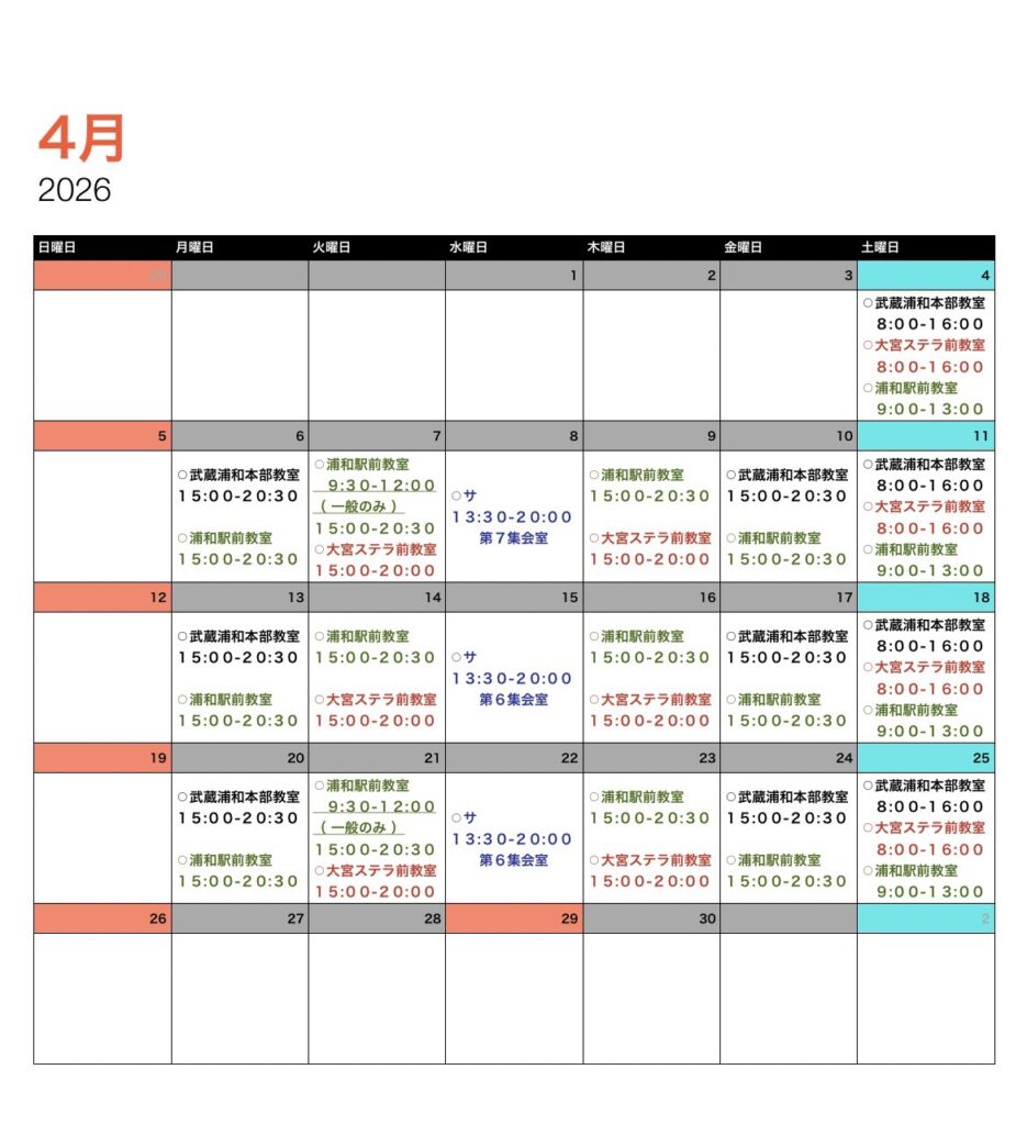 ■当教室カレンダーで必ず開講日のご確認をお願いします!
